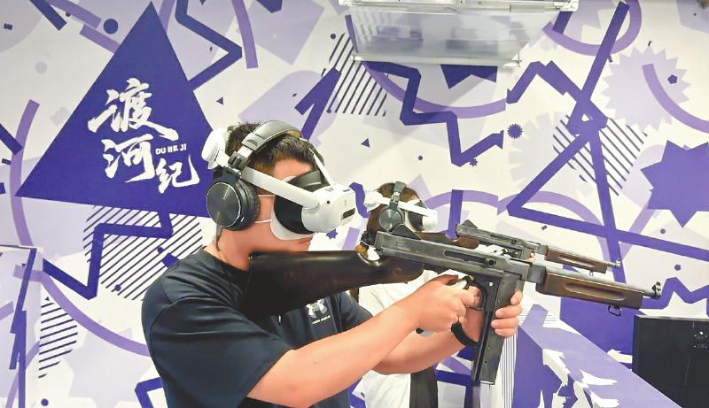 记者体验“飞夺泸定桥全感互动空间”项目。周宝摄