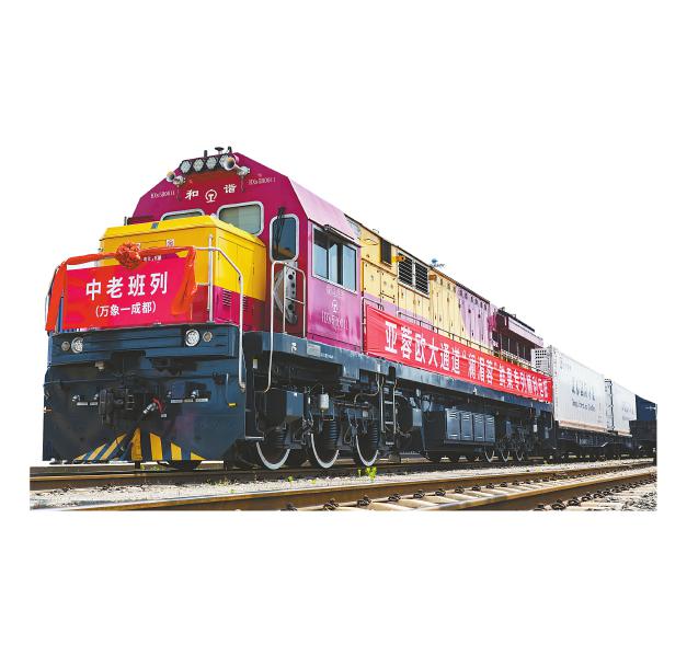 满载泰国榴莲、山竹等进口水果的中老铁路专列进港。
