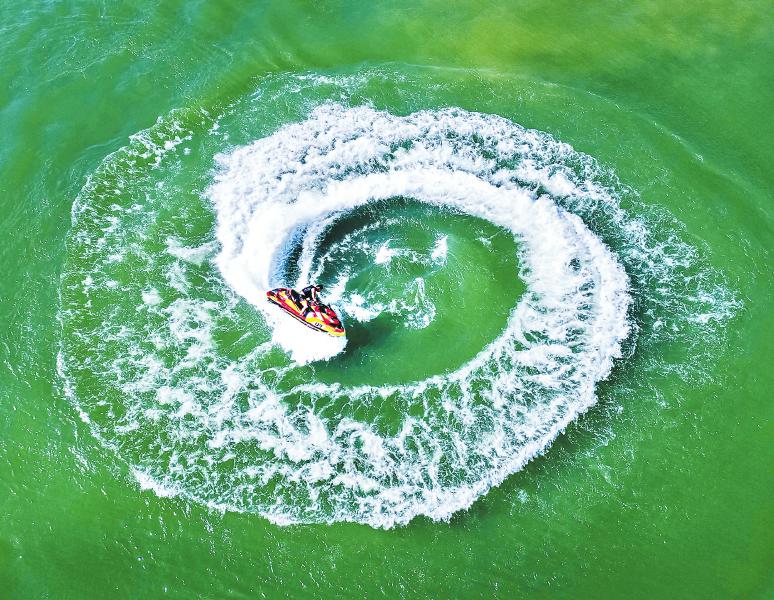 近日,南充市顺庆区渔溪镇嘉陵江内河上,水上运动爱好者正在进行赛摩训练。 吴斌 摄(C视觉)