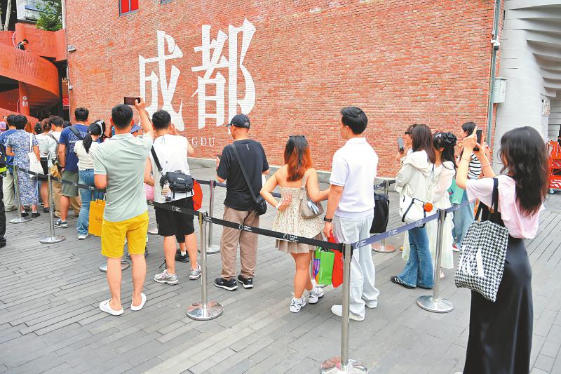 游客在成都东郊记忆“网红墙”前排队合影。 四川日报全媒体记者 李志强 摄