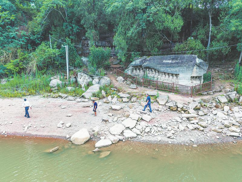 图为6月22日在书房坝水库拍摄的露出水面的摩崖造像。 杨康忠 摄(C视觉)