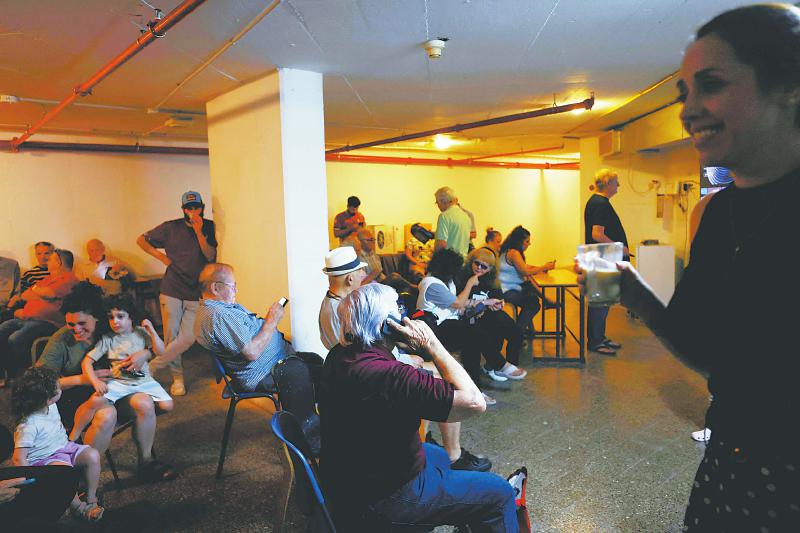 6月23日,在以色列海法,人们聚集在一处地下避难所。 新华社/法新