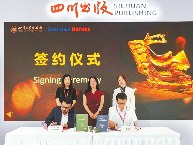 四川大学出版社与施普林格·自然集团的“青铜时代的中国:三星堆-金沙”系列图书合作出版签约仪式。 蒋翼鹏 摄