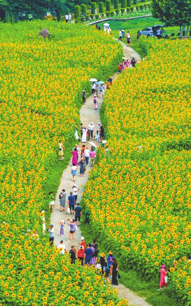 近日,位于成都市温江区寿安镇的汪家湾花田,格桑花、向日葵进入盛花期,不少市民前来游玩观赏。 张志强 摄(C视觉)