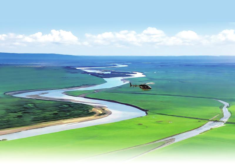 6月26日,若尔盖低空旅游项目启动试运行。直升机载着首批体验者,飞翔在黄河九曲第一湾。 李忠 摄(C视觉)