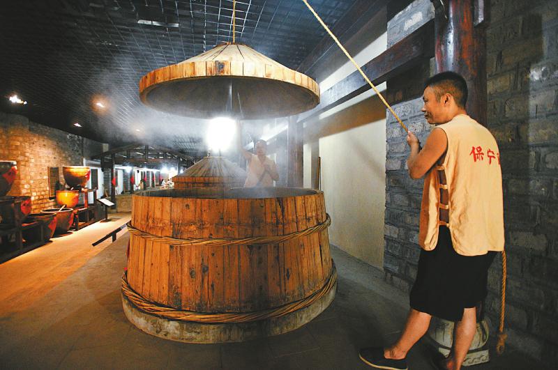 六月二十六日,在阆中市中国保宁醋文化博览园内,工作人员展示传统酿醋工艺。四川日报全媒体记者华小峰摄