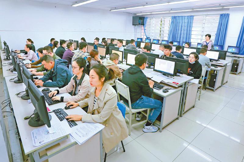 四川省机关公文写作技能大赛现场,参赛选手们正在认真答题。