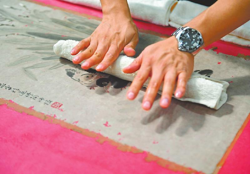 参赛选手在纸张书画文物修复师赛区进行比赛(7月4日摄)。 新华社记者 刘坤 摄