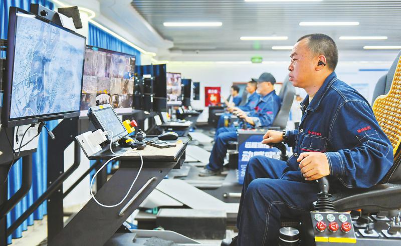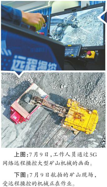 7月9日,在攀钢集团矿业有限公司朱兰铁矿分公司5G操控大厅里,工作人员正通过5G网络远程操控大型矿山机械。