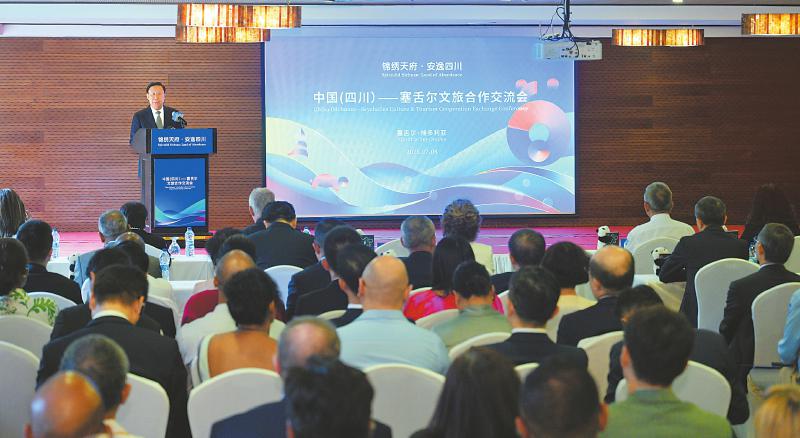 当地时间七月八日,“锦绣天府·安逸四川”中国(四川)—塞舌尔文旅合作交流会在维多利亚市举行。四川日报全媒体记者 欧阳杰 摄