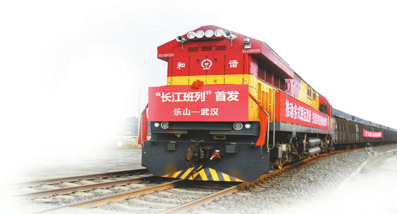 乐山首趟“长江班列”从新成昆铁路夹江站新货场缓缓驶出。 胡志强 摄(C视觉)
