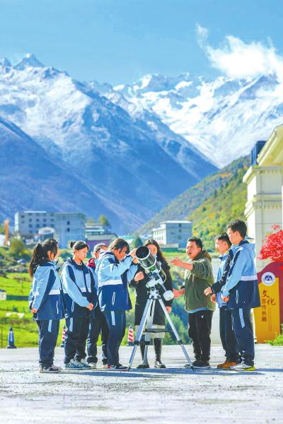 康定二中天文社团学生在观测太阳黑子。