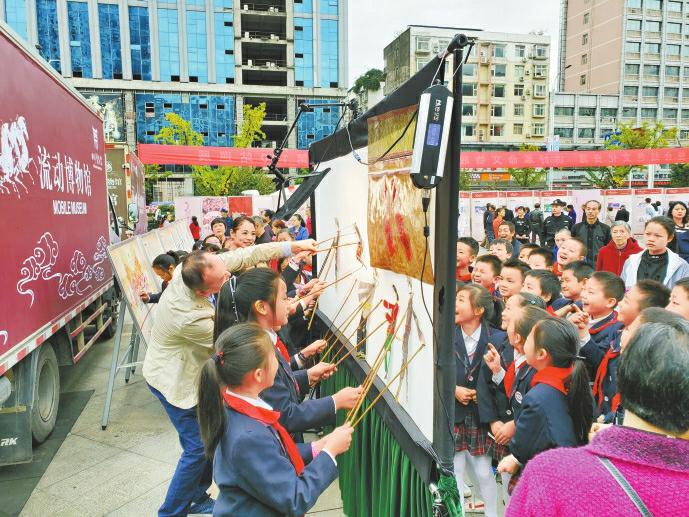 四川博物院流动博物馆皮影体验活动现场。