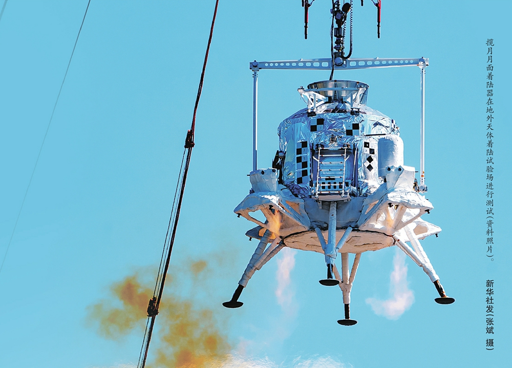 揽月月面着陆器在地外天体着陆试验场进行测试(资料照片)。新华社发(张斌摄)