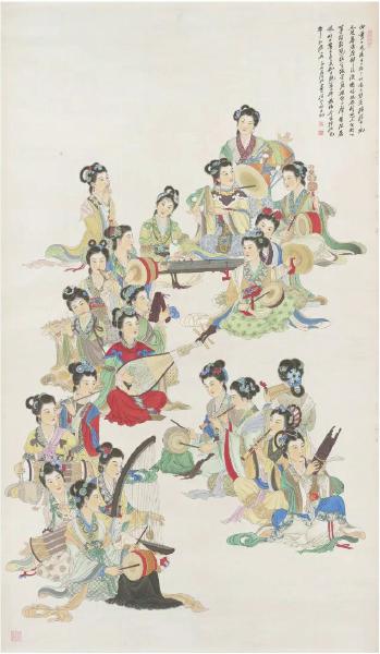 西蜀伎乐(中国画),尺寸:158cm×92cm。 赵夜白 作
