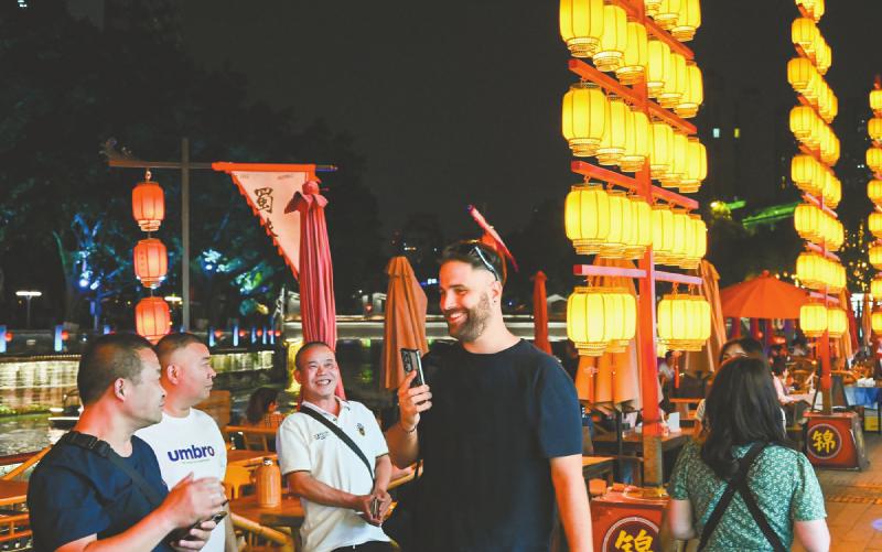 德国游客体验夜游锦江。 夜游锦江供图