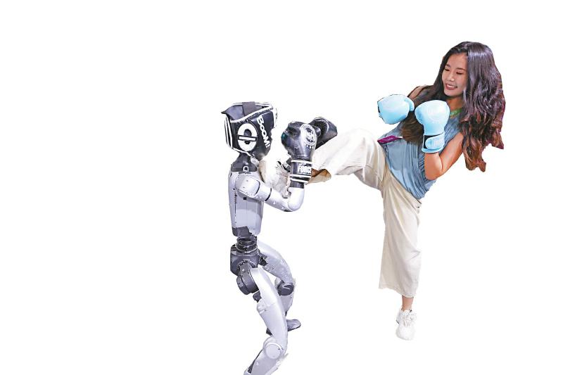 8月8日,宇树科技人形机器人在2025世界机器人大会上进行格斗表演。 新华社记者 金立旺 摄