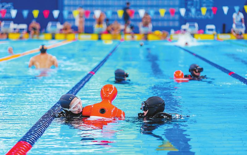 8月6日,成都体育学院三岔湖校区,救生项目裁判组现场研究比赛规则、检查场地器材。四川日报全媒体记者 向宇 摄