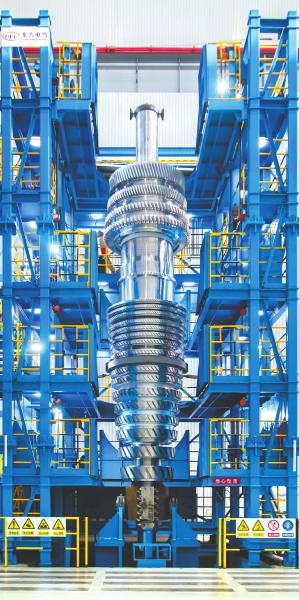 东方汽轮机的轮盘高效叠装生产线可以实现转子零解体,轮盘转运效率提升百分之八十,转子叠装周期缩短一半。东方汽轮机供图