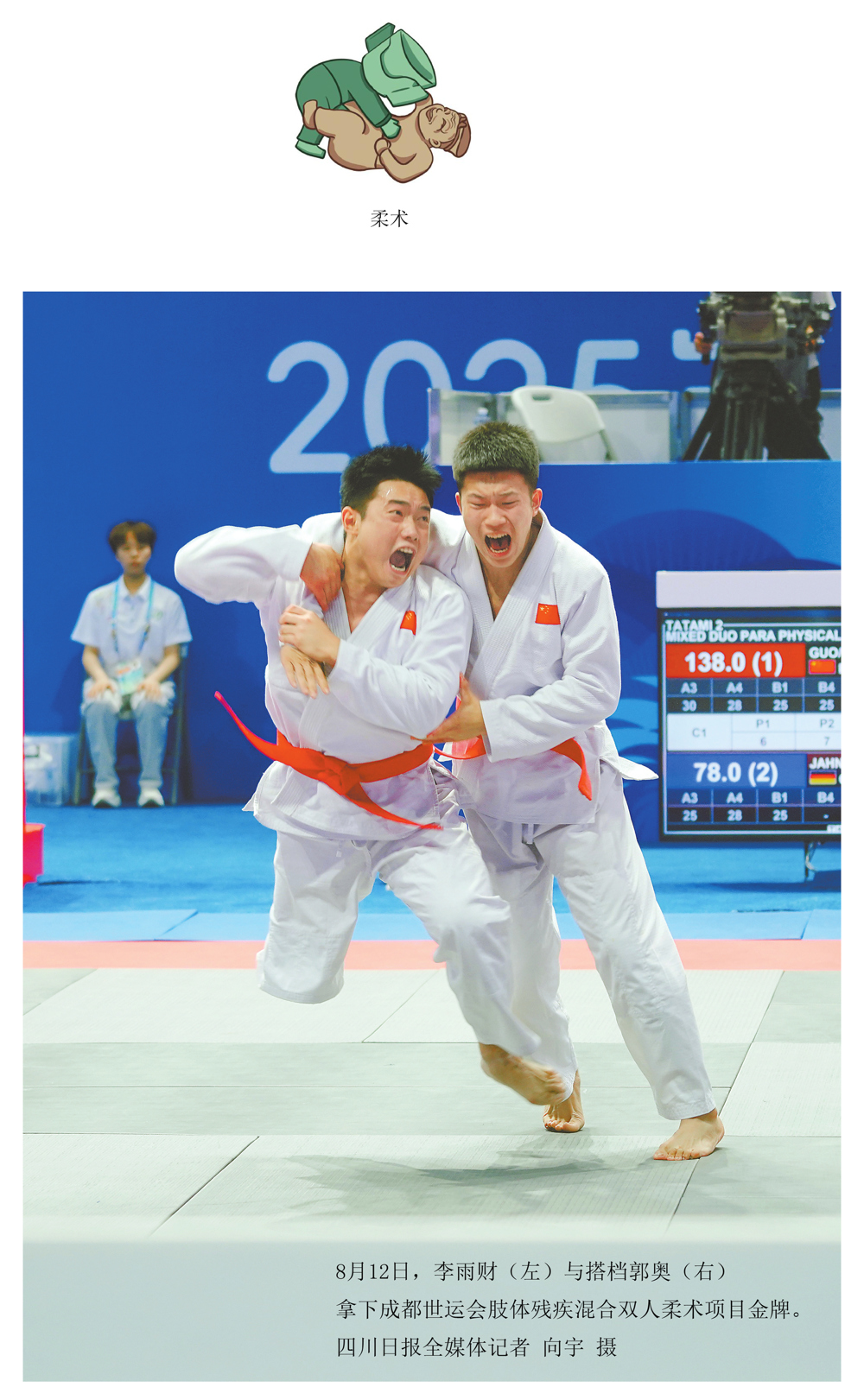 李雨财(上)/郭奥在郭奥在赛后庆祝。 四川日报全媒体记者 向宇 摄