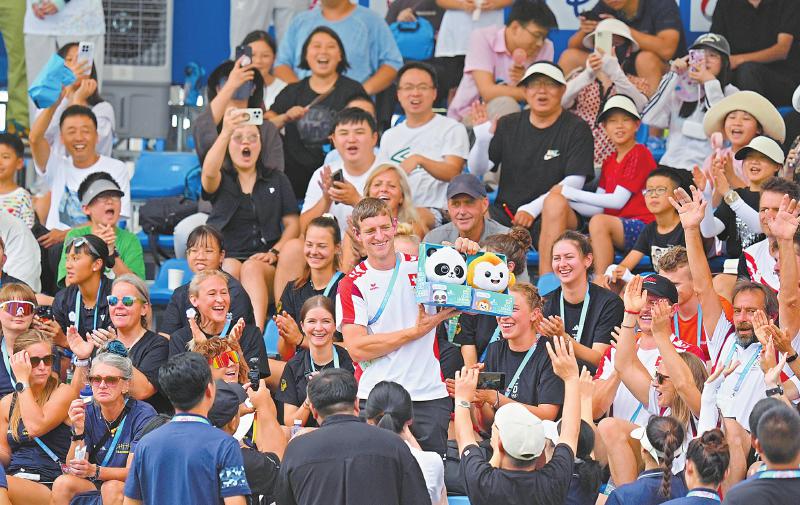 8月11日,恰逢瑞士队队员埃尔米·彼得生日,他收到了志愿者送上的生日礼物——成都世运会吉祥物。
