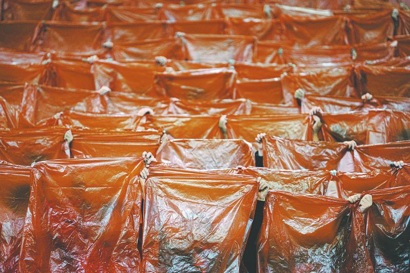 11月9日,自贡灯城燊龙队的4000名球迷用塑料袋拼出巨型Tifo(看台拼图),为球队加油。