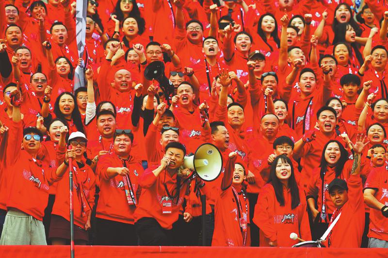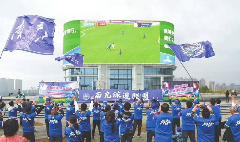 11月9日,自贡灯城燊龙队以2∶0战胜对手,球迷现场欢呼,庆祝球队提前锁定总决赛席位。