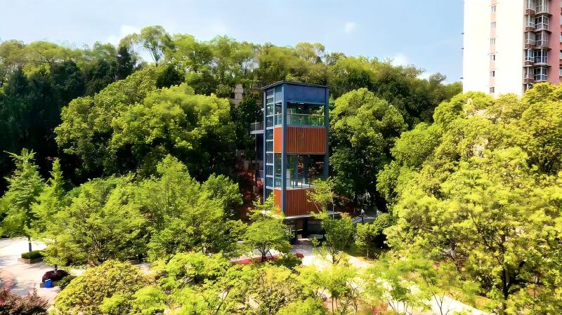 游仙区五八社区建成绵阳首部户外上山电梯。