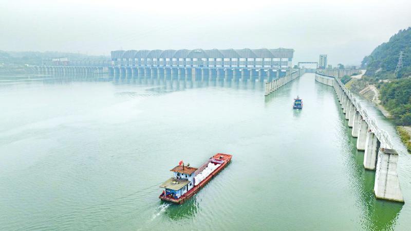 大件运输船舶通过龙溪口航电枢纽船闸。受访者供图