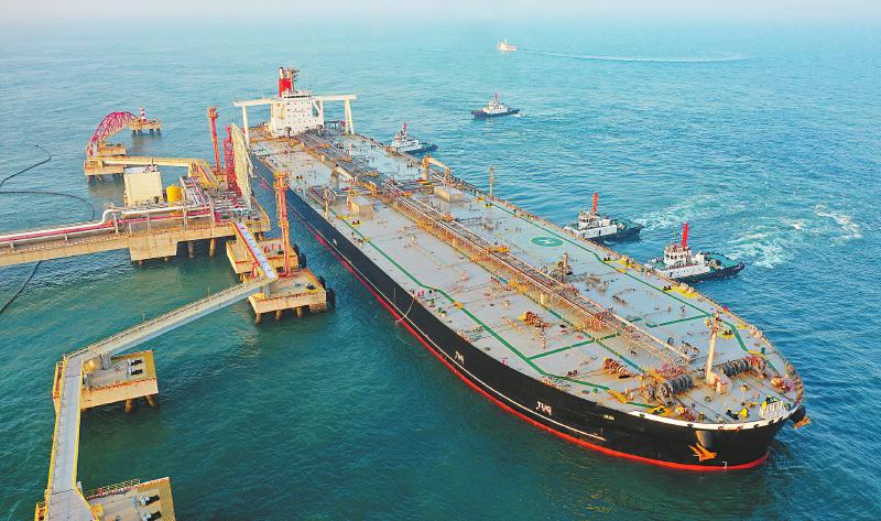 12月18日,装载着首批“零关税”石化原辅料的外籍船舶泊入洋浦港。 新华社记者 郭程 摄