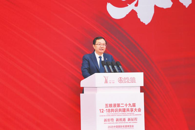五粮液股份公司党委副书记、副董事长、总经理华涛作营销工作报告。