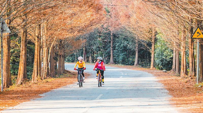 12月7日,崇州市四宝路两侧水杉在暖阳下构成一幅明艳的冬日画卷。这条路已成为骑行爱好者的热门选择,每日吸引众多骑行者穿梭于此。