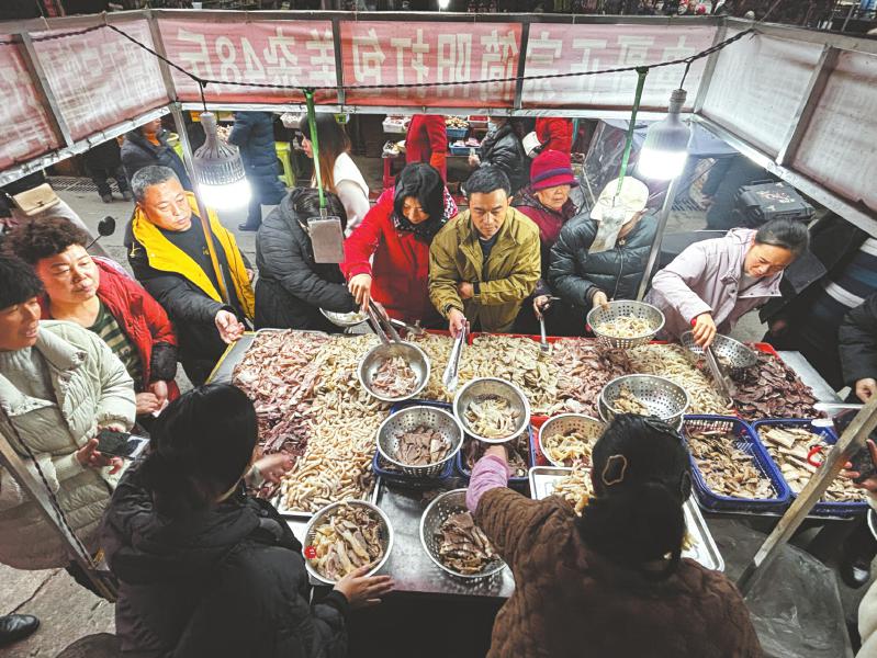 12月21日,冬至恰逢周日,成都小关庙、三官堂等老牌羊肉美食聚集地人气爆棚。小关庙街上,沿街店铺支起上百张临时餐桌,迎接食客的到来。市民沈先生说,每年冬至他都来小关庙吃羊肉,图的就是这份烟火气。与此同时,遂宁经开区川中大市场、成都市成华区双华路沿街菜市和双流区黄甲街道农贸市场的羊肉售卖点的客流也比平日明显增多。无论堂食还是回家自己烹饪,市民在热气氤氲里解锁冬至的仪式感。 龚榜玉 吴奉家(C视觉)四川日报全媒体记者 华小峰 摄影报道