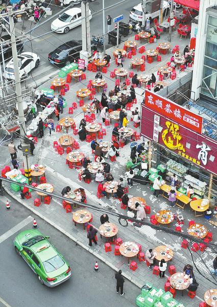 成都市青羊区小关庙羊肉汤一条街非常热闹。