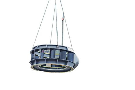 12月20日,青峪口水库水轮发电三号机组座环吊装。