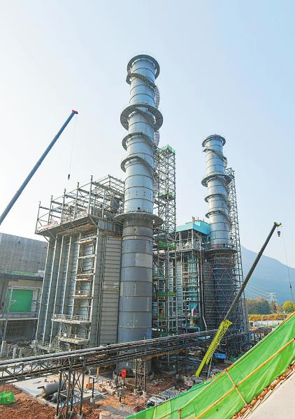 12月10日,四川能投巴中(通江)燃气发电工程项目建设现场,工人在加快1号机组锅炉、汽机等核心设备安装调试。夏雨 摄