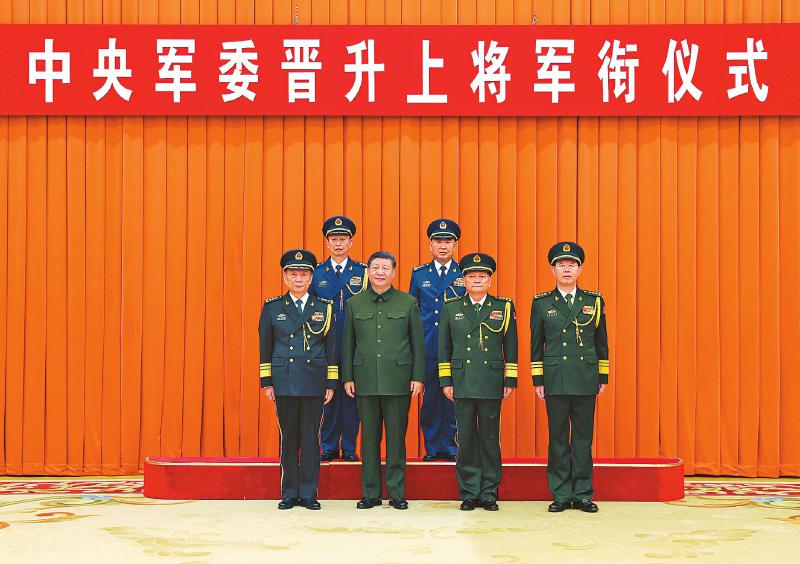 12月22日,中央军委晋升上将军衔仪式在北京八一大楼举行。中央军委主席习近平出席晋衔仪式。这是习近平等领导同志同晋升上将军衔的军官合影。 新华社记者 李刚 摄