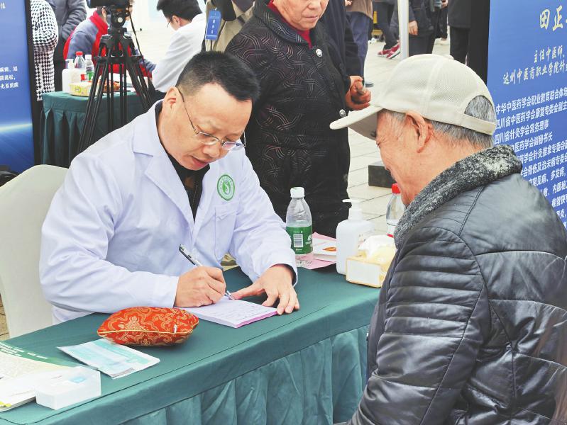 去年达州举办了多场中医药文化惠民健康集市活动。图为活动中医生为患者义诊。刘晓慧 摄