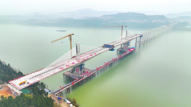 1月18日,连接阆中市和营山县的阆营高速公路嘉陵江特大桥举行合龙仪式。该高速全长103公里,建成后将进一步串联起川东北区域路网。 王玉贵 摄(C视觉)