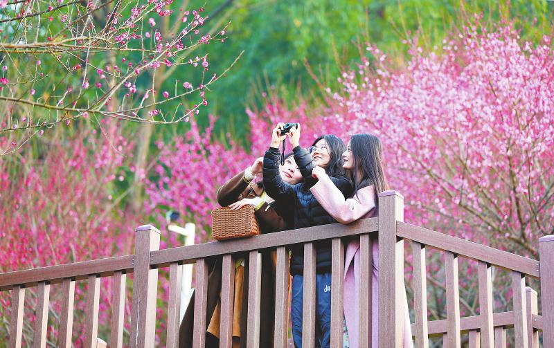 赏红梅 1月18日,达州通川区大寨子公园,市民观赏红梅花。曾猛 摄(C视觉)