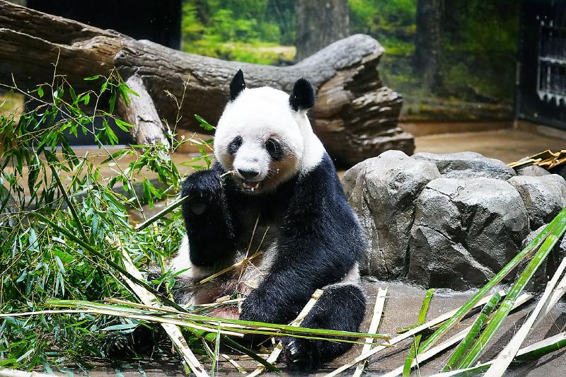 这是在上野动物园拍摄的大熊猫“蕾蕾”。新华社记者 贾浩成 摄