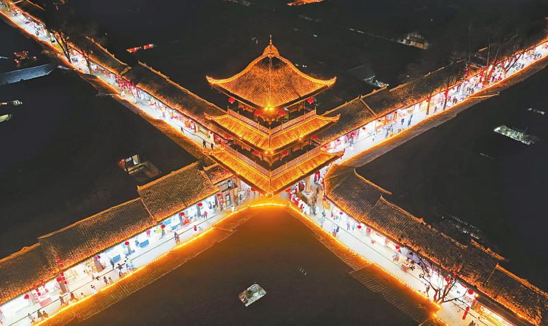游 阆中古城年味浓 1月25日晚,南充阆中市“2026阆中古城过大年”系列活动启动,向全球游客发出“世界古城·春节原乡”的诚挚邀请。当晚古城街头舞龙舞狮,花车、汉服巡游,板凳龙表演等节目轮番上演,吸引众多游客和市民夜赏、打卡拍照。 梁德 摄(C视觉)