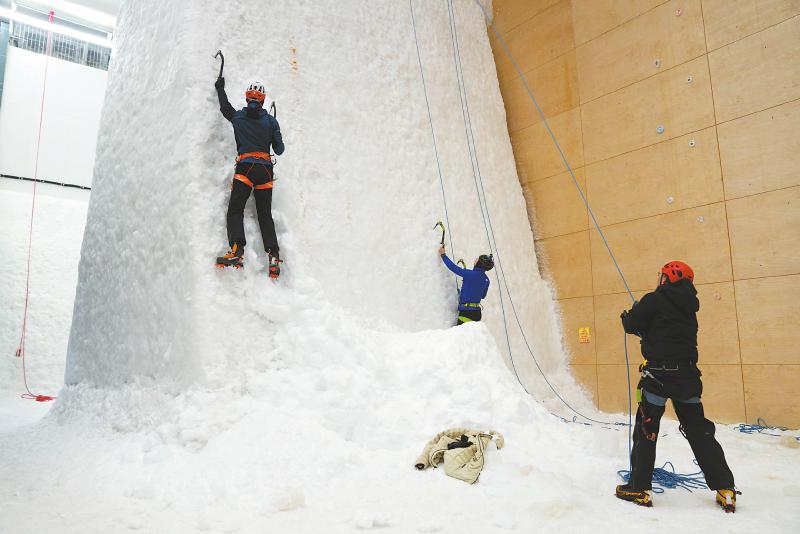 爱好者正在练习攀冰。 四川日报全媒体记者 李强 摄