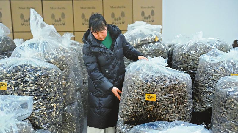天府菌都交易中心内,商户正在统计货品。 杨柳 摄