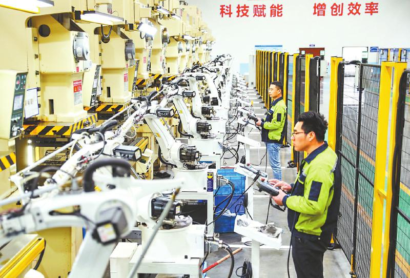 2月24日,四川华蓥山经开区,怡田科技有限公司智能车间工人操控机械设备生产订单产品。 邱海鹰 摄(C视觉)
