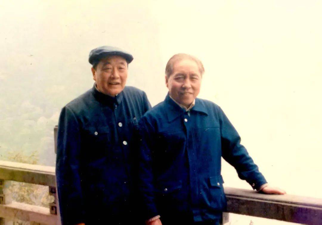 1988年,徐敬三和时任中共中央政治局委员、中共四川省委书记杨汝岱书记(右)合影。