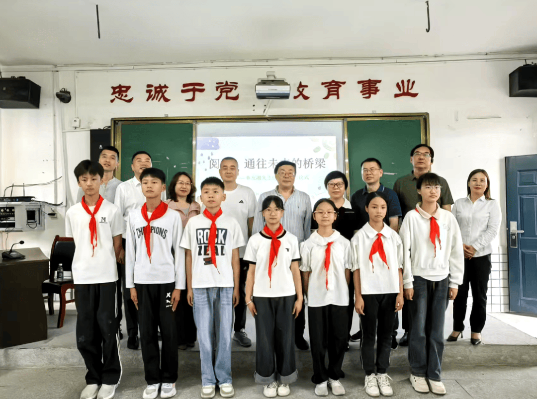 本文作者(第二排右四)一行与白合中心校的孩子们合影