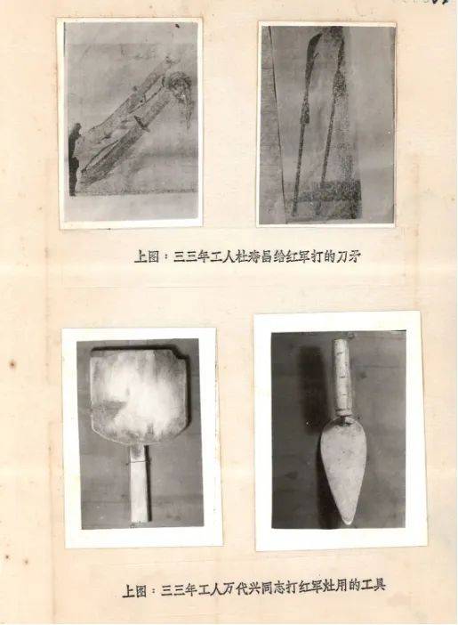 1933年工人给红军打的刀矛及打灶用的工具照(原苍溪县麻纺厂吴从宪收藏)