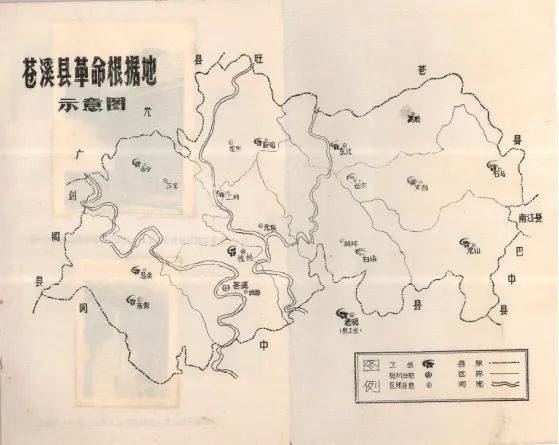 苍溪县革命根据地示意图(原苍溪县麻纺厂吴从宪收藏)