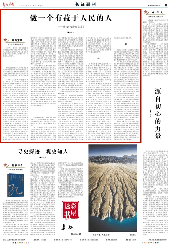 榜样的力量是无穷的。白求恩毫不利己、专门利人的精神和毛泽东《纪念白求恩》这篇光辉著作,从抗日战争时期开始,传遍中国大地,传入千家万户,激励着一代代共产党人做一个有益于人民的人。新时代新征程,我们只有像白求恩那样,坚持人民至上、站稳人民立场,把人民放在心中最高位置,才能赢得人民群众的信任、拥护和支持,才能取得更大的胜利和荣光。